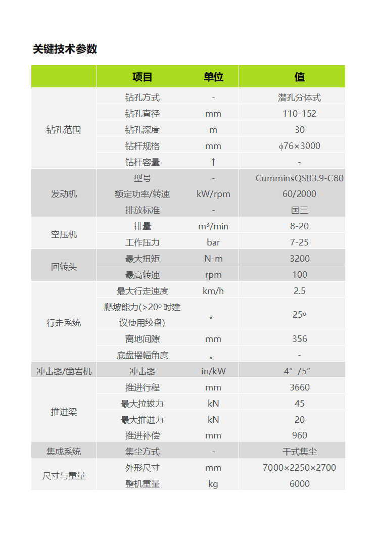 ZDH系列潜孔钻机是一体式潜孔钻机,采用高风压冲击器,钻孔速度快,成孔质量高,钻孔直径范围在76~165mm。该系列钻机技术领先,工艺成熟,做工精湛,性能可靠,维护成本低,能适应各种复杂工况。同时具备操作简单、轻巧灵活的特点。